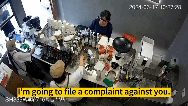 공개된 영상에서는 한 여성 고객이 “커피가 너무 늦게 나온다”며 본사에 고발하겠다고 항의를 했다. 그러자 제조 공간에 있던 여성 바리스타가 “고발할 테만 해보라”며 커피 가루를 가득 담은 통을 집어 여성을 향해 뿌리는 모습이 담겼다.