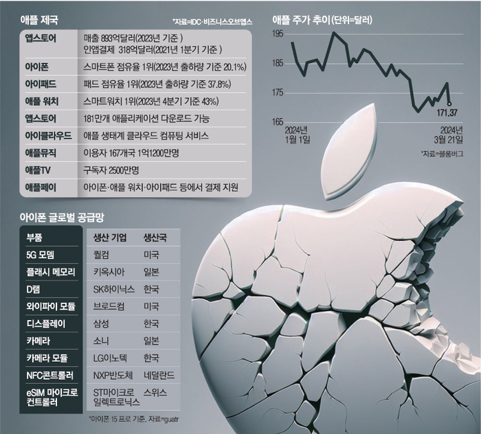 미 법무부가 21일(현지시간) 애플에 작심하고 칼을 빼들었다. 이날 반(反)독점 혐의로 뉴저지 법원에 제소한 항목들은 전세계 주요 정부가 애플에 적용한 반독점 조치 중 가장 강력한 것이다. 특히 미국 정부가 글로벌 정보통신(IT) 공룡을 상대로 낸 반독점 소송 중에서도 전례가 없을 만큼 작심하고 철퇴를 내렸다는 평가다.