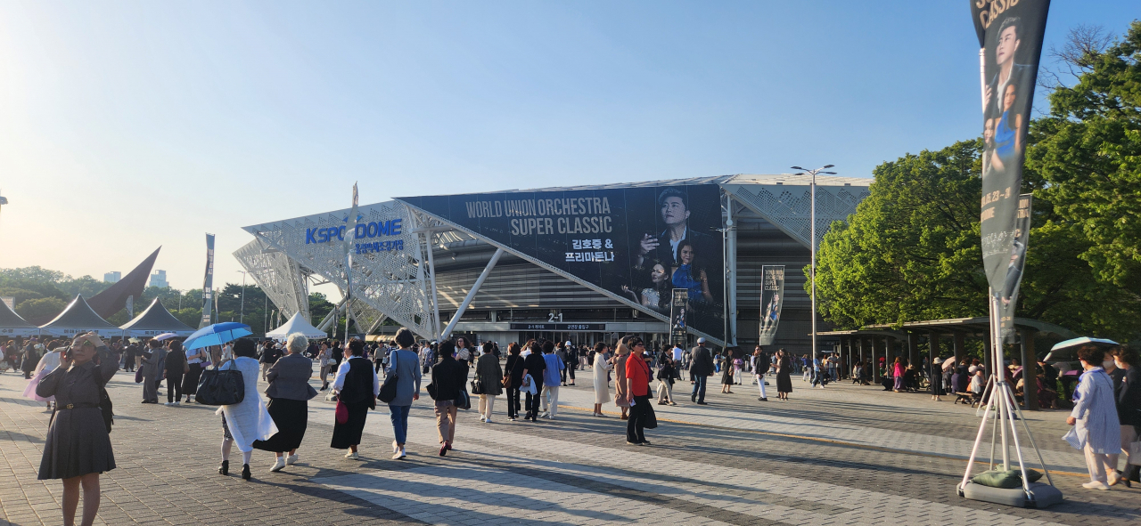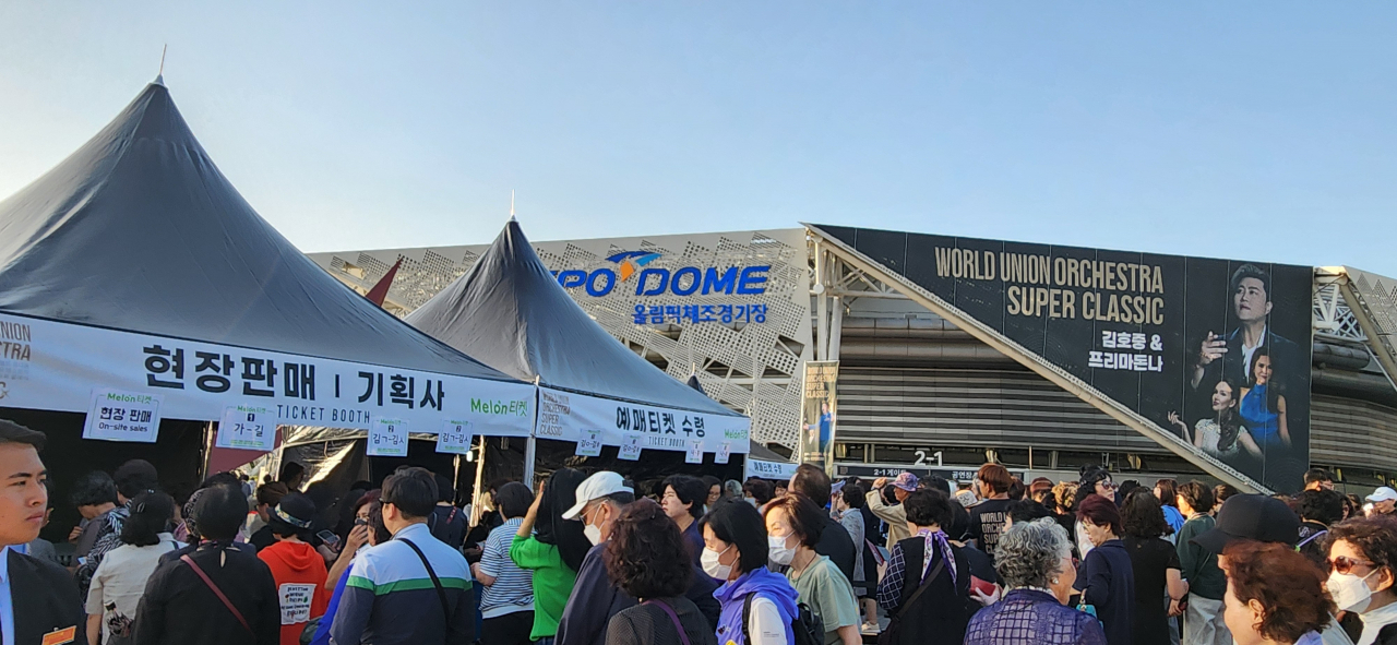 23일 오후 서울 송파구 케이스포돔(KSPO DOME, 구 체조경기장)은 ‘월드유니온 오케스트라 슈퍼 클래식 : 김호중 & 프리마돈나’의 공연을 네다섯 시간 앞둔 오수 3~4시부터 팬들이 모이기 시작했다.
