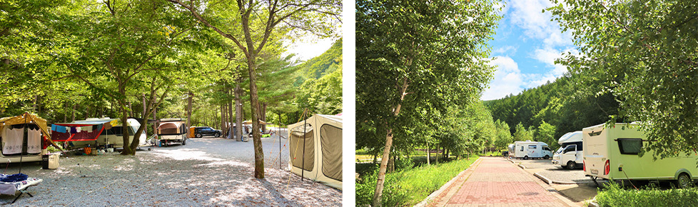 숲 속의 쾌적한 환경과 청정한 자연이 특징이며, 휴양과 캠핑을 동시에 즐길 수 있습니다. 가족 단위 캠핑객이 많아 편의시설이 잘 갖춰져 있습니다.