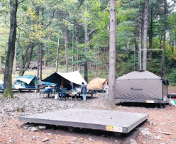 기본적으로 깊은 숲 속 나무들 사이에 나무 데크를 마련했고 각 캠핑장 구역마다 대형 부대시설을 설치하여 이용에 불편함이 없다.