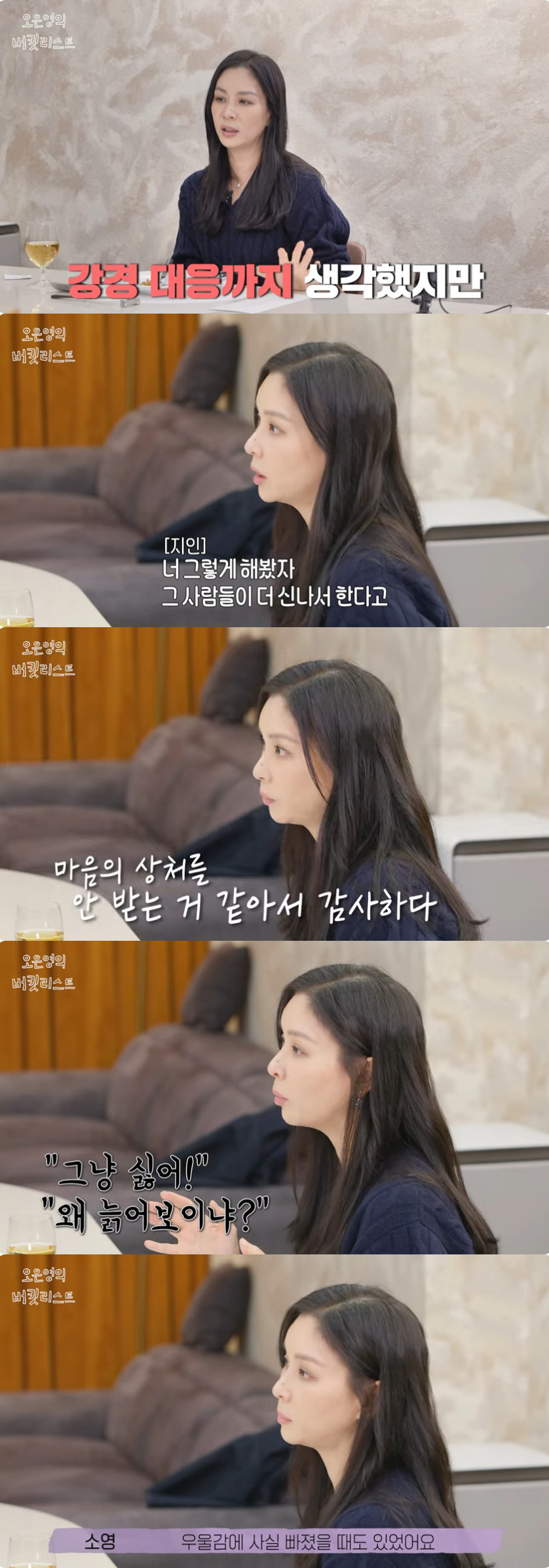 고소영은 "사실 악플이 엄청 많이 달리는 케이스다. 내용은 없지 않냐. 그냥 싫어, 왜 늙어보이냐 하고. 너무 예쁘게 나오면 맨날 치장한다고. 이래도 욕먹고 저래도 욕 먹는다. 이런 말이 사실 많이 상처가 된다. 내가 이렇게 나쁜 사람인가? 나 잘못 살고 있나? 하는 생각에 우울감에 빠졌을 때도 있었다. 소통을 너무 안 하니까 오해도 생길 수도 있어서 (유튜브에) 나온 계기도 있다"고 밝혔다.