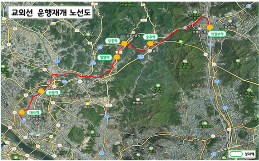 교외선은 수도권 북부를 연결하는 철도 노선으로, 오랜 기간 운행이 중단되었다가 2025년 1월 11일 재개통을 앞두고 있습니다.