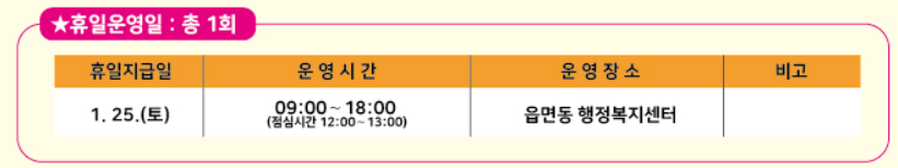 또한, 평일 방문이 어려운 시민들을 위해 1월 25일(토) 에도 읍면동 행정복지센터에서 정상적으로 신청 접수를 받습니다.