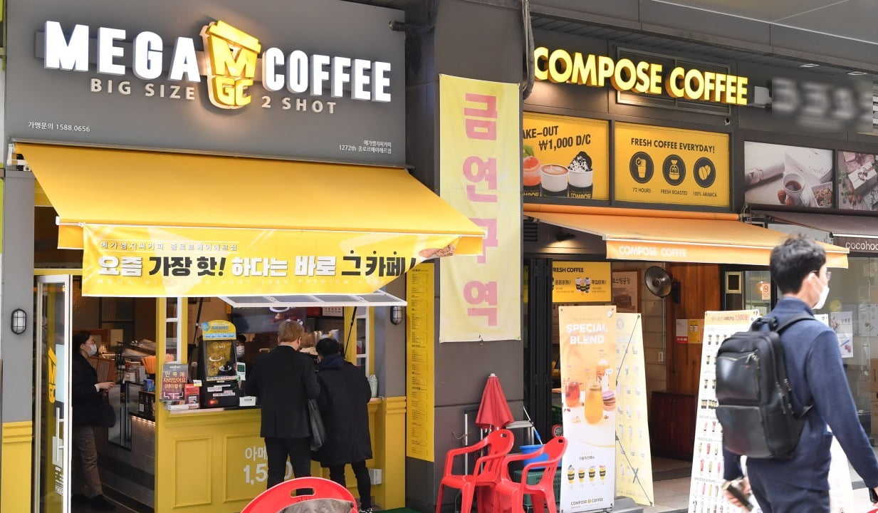 이들 3개 업체 매장 수는 최근 7000개를 넘었다. 1위는 약 3000개의 매장을 보유한 메가커피, 2위는 컴포즈커피(2500개), 3위 빽다방(1600개)으로 중저가·저가 커피 브랜드 매장의 수가 각 3000개를 속속들이 돌파하고 있다.