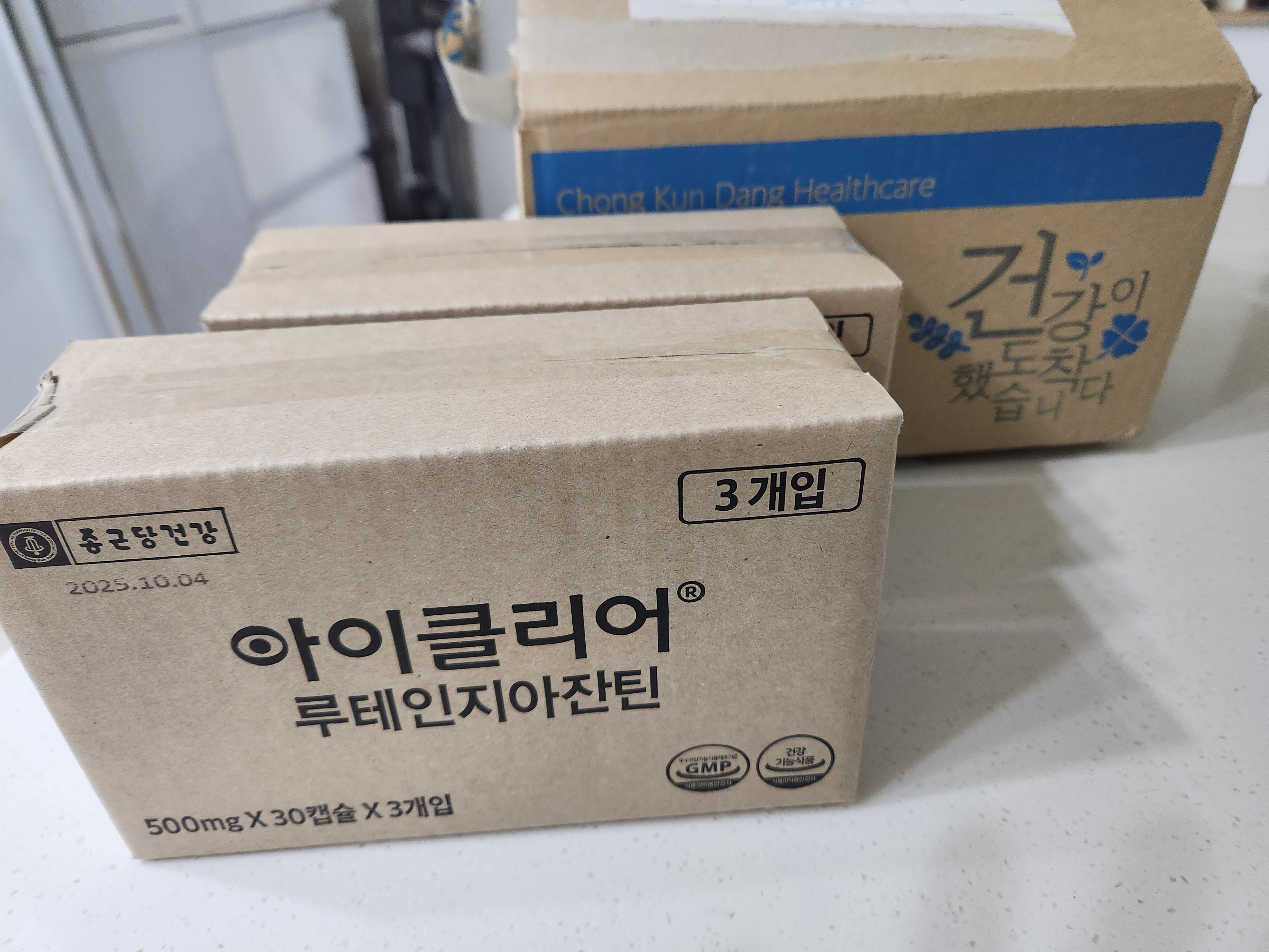 제가 주문한 종근당 아이클리어 루테인지아잔틴이 단단히 잘 포장되어 도착했네요.