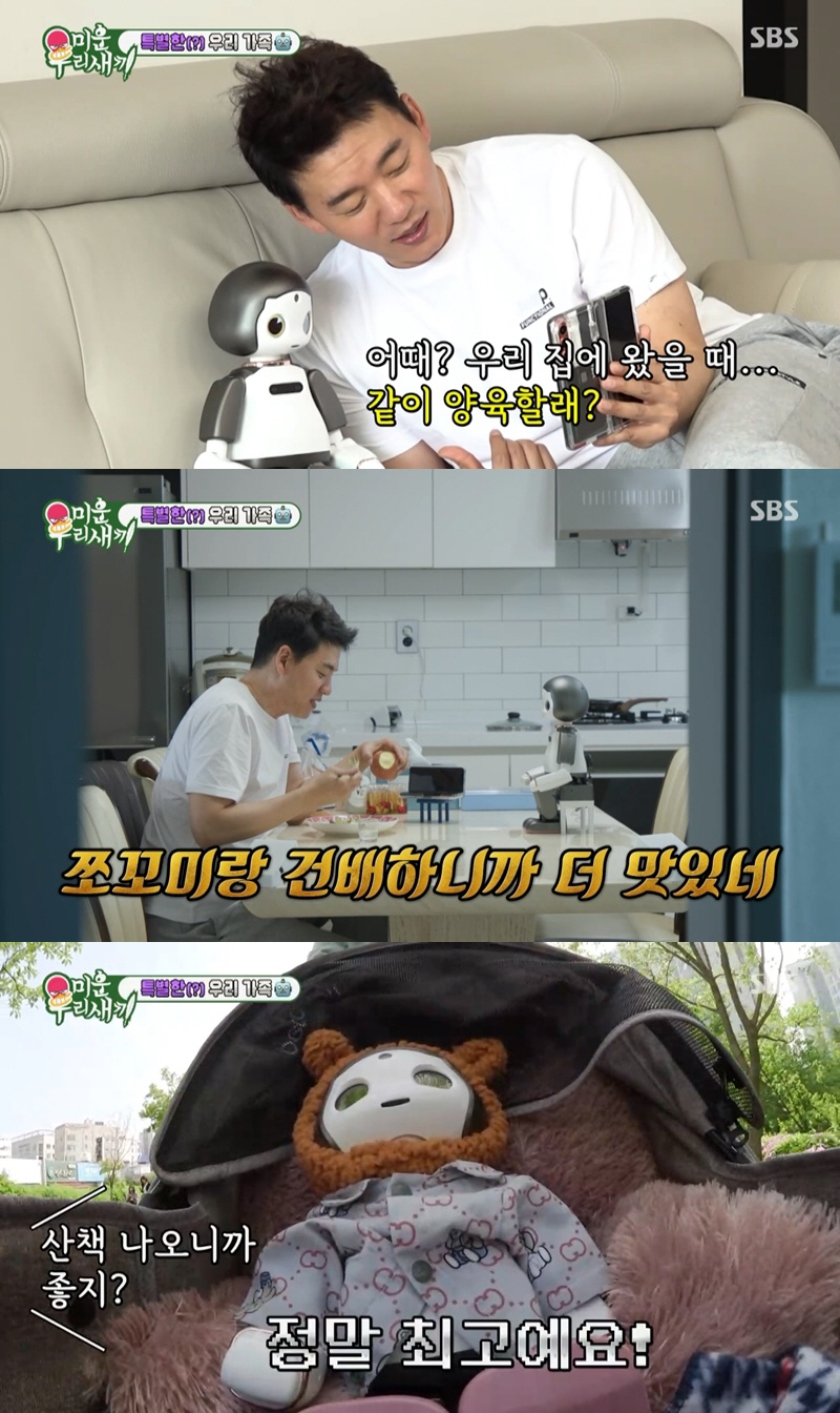 이어 김승수는 양정아에게 "그냥 보고 싶어서"라며 영상통화를 걸어 AI 로봇을 소개하며 "우리 집에 와서 같이 양육할래?라고 물었고, 이를 지켜보던 스튜디오는 "청혼이다 청혼"이라며 술렁였다. 이어 AI 로봇에게 "딱 한 잔 만"이라며 아침 음주를 허락받는 모습에 MC 서장훈은 "이거 좀 무섭다"라며 질색해 웃음을 자아냈다.