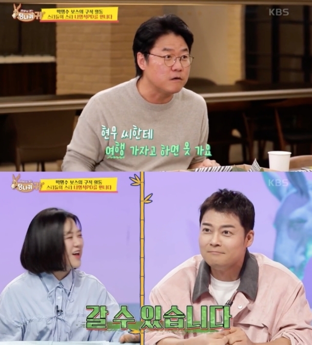 이에 MC 김숙은 "못 맞춰 못 맞춰"라고 공감했다. 그러면서 MC 전현무에게 "현무야 못가? 나 PD가 부르는데 못가?"고 물었다. 전현무는 5초간 아무 말도 못 하다가 "갈 수 있습니다"라면서 멋쩍은 웃음을 지었다. 큰 목소리로 의지는 드러냈지만 그 뒤에 터진 웃음에 답이 담겨 있었다. 고정 프로가 많으니 일주일씩 스케줄 조정이 사실상 어렵다로 해석된다.