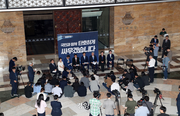 혁신당은 의석수를 고려하지 않은 국회사무처의 사무실 배정에 항의해 개원 나흘째인 이날까지도 사무실 입주를 거부하고 있다. 황 원내대표는 “마치 김밥 도시락을 시켰더니 김밥의 양 끝 머리만 모아서 그것도 도시락을 채우지 않은 채 이렇게 배달된 것과 마찬가지”라면서 “다시 한번 말씀드리지만 국회 사무처와 거대 양당이 낡은 관행과 기득권에서 벗어나서 재배정해주기를 요구한다”고 했다.