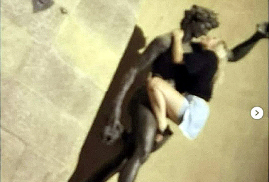 특히 BBC는 이 여성이 동상 위에 올라가 입을 맞추는가 하면 왼쪽 다리를 걸치고 끌어안고 몸을 비비는 등 성행위를 연상케 하는 동작을 취했다고 설명했다.