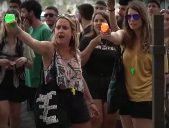 시위대는 "관광객은 집으로 돌아가라"는 문구가 적힌 피켓을 들고 호텔 등을 봉쇄하고 관광객들을 향해 물총을 쐈다.