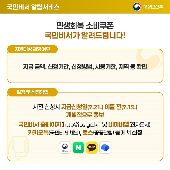 사전 신청시 지급신청일(7.21.) 이틀 전(7.19.) 개별적으로 통보.
