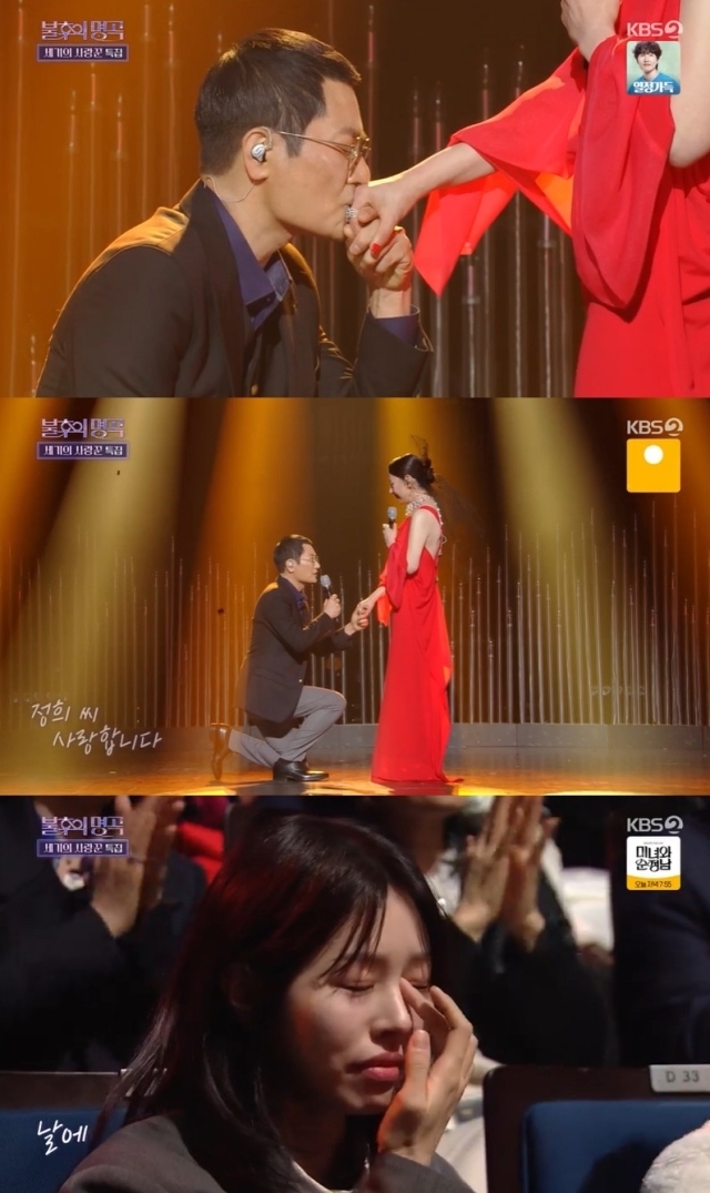 서정희와 김태현 커플은 바리톤 김동규의 곡 '10월의 어느 멋진 날에'에 맞춰 무대를 꾸렸다. 현장에는 딸 서동주 양도 참석해 두 사람을 지켜봤다. 무대 말미 김태현은 서정희 앞에 무릎을 꿇고 그의 손등에 입을 맞추며 "정희 씨, 사랑합니다"라고 고백했다. 이를 지켜보던 서동주는 눈물을 훔쳤고 서정희 역시 눈물을 글썽였다.