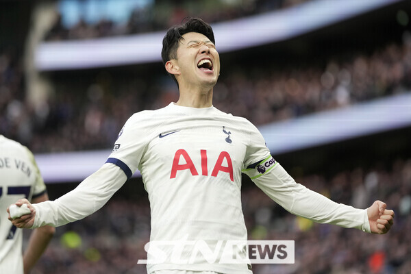 토트넘 홋스퍼의 손흥민이 지난달 31일(현지시각) 영국 런던의 토트넘 홋스퍼 경기장에서 열린 2023-24 프리미어리그(EPL) 20라운드 본머스와의 경기를 승리로 마친 후 팬들에게 인사하고 있다. 손흥민은 후반 26분 팀의 두 번째 골을 넣어 리그 12호골을 기록했고 팀은 3-1로 승리했다. 사진┃뉴시스/AP