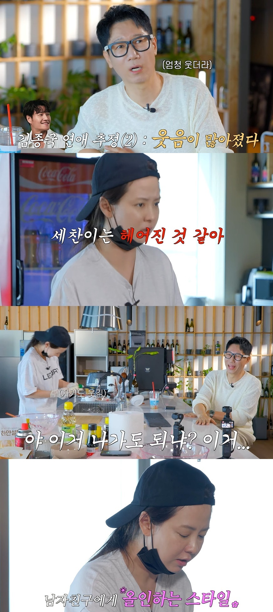 "처음 듣는 얘기다", "이거 특종이다"며 지석진이 놀라워하자 송지효는 "아니다. 잘 모른다. '있는 것 아닐까?'라고 얘기하는 것"이라고 급히 수습했다. 송지효가 김종국의 연애를 의심하는 이유는 무엇일까.