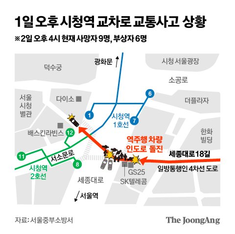 지난 1일 밤 발생한 서울 시청역 앞 차량 돌진 참사로 사망한 9명 중 4명은 같은 시중은행에서 함께 근무하던 동료였다.