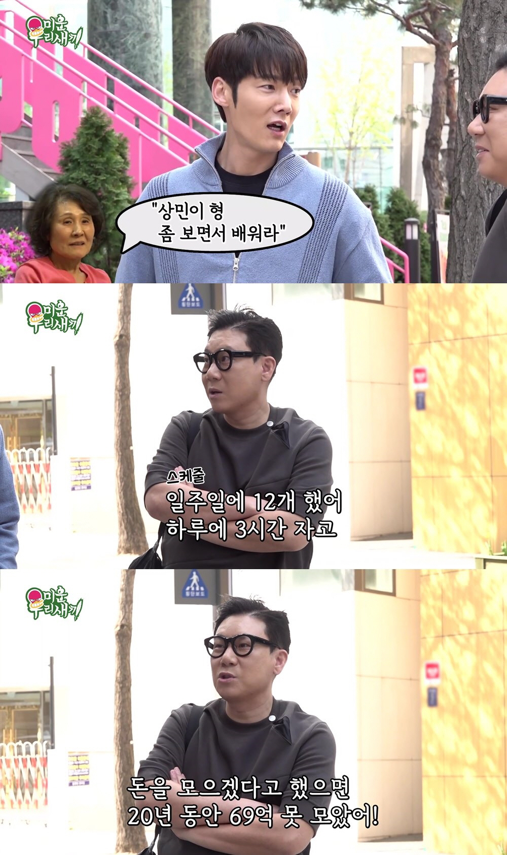 이번에 빚 다 청산하신 걸 보고 '상민이 형 보면서 배워라', '상민 씨 얼마나 대단하냐'고 하더라"고 전했다. 이에 이상민은 "나 진짜 열심히 살았다. 방송 많이 할 때는 일주일에 12개 했다. 하루에 3시간 잤다.