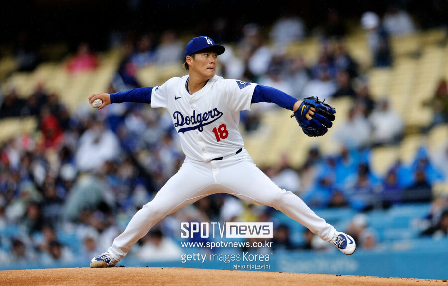 ▲ 야마모토는 시즌 네 번의 등판에서 16이닝을 던지며 1승1패 평균자책점 4.50을 기록 중이다. 다만 첫 경기에서 1이닝 5실점 부진이 아직까지는 크게 도드라질 수밖에 없는 표본이라 여전히 반등을 점치는 시선이 많다.