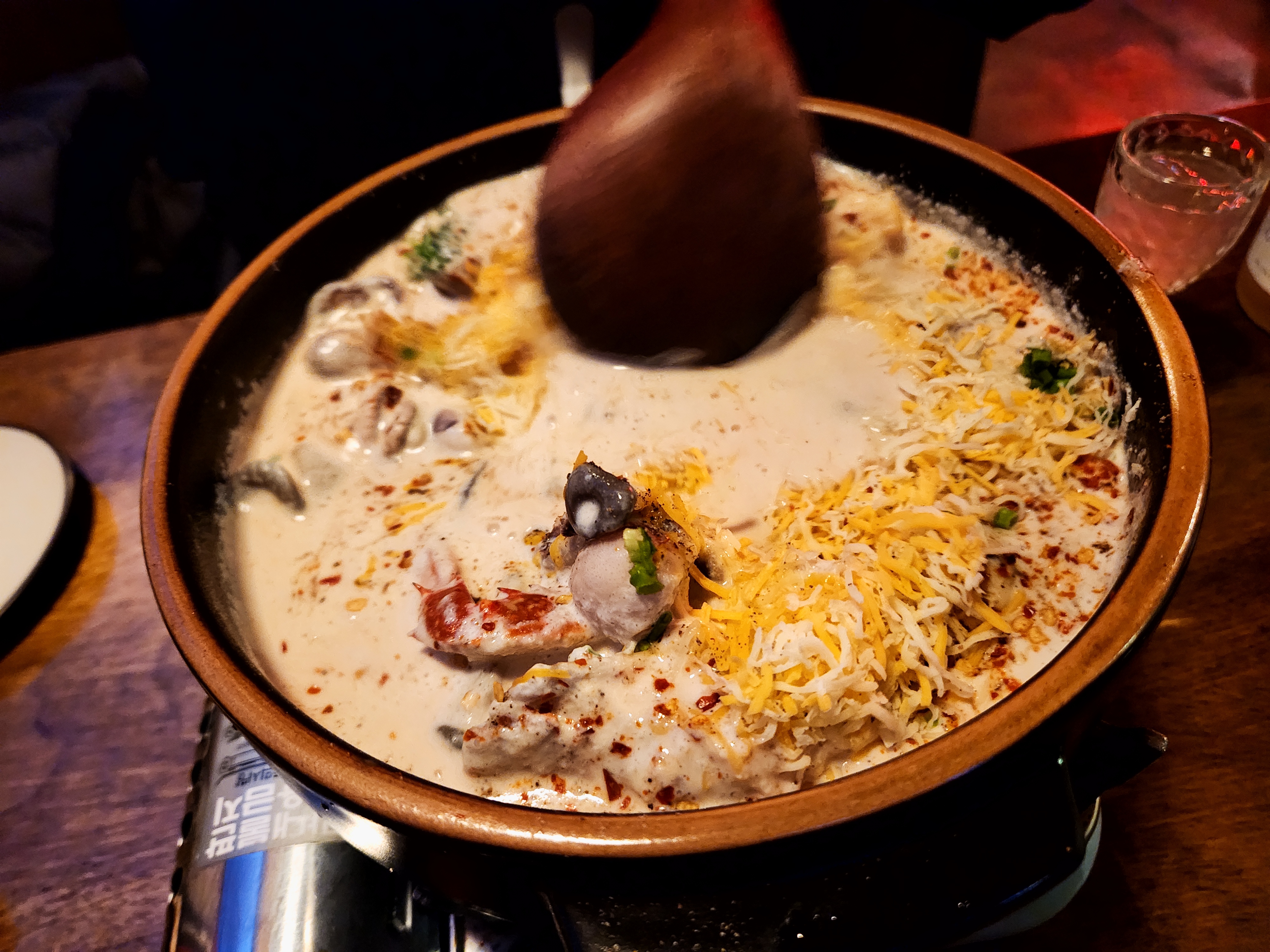 고흥유자주 하고 같이 먹는 해물크림수제비는 안주용으로도 아주 훌륭해서 홀짝홀짝 마시면서 주꾸미 먹고 새우 하나 먹고 ㅋ