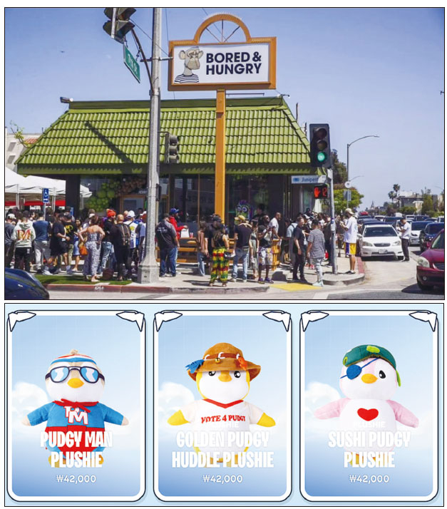 올해 2월 서울 성수동에 문을 연 수제 햄버거 식당 ‘보어드 앤 헝그리(Bored& Hungry)’가 좋은 사례다. 평소 NFT 시장에 조금이라도 관심 있는 이가 매장 앞을 지나간다면, 익숙한 디자인에 발걸음을 멈출 수밖에 없을 테다.