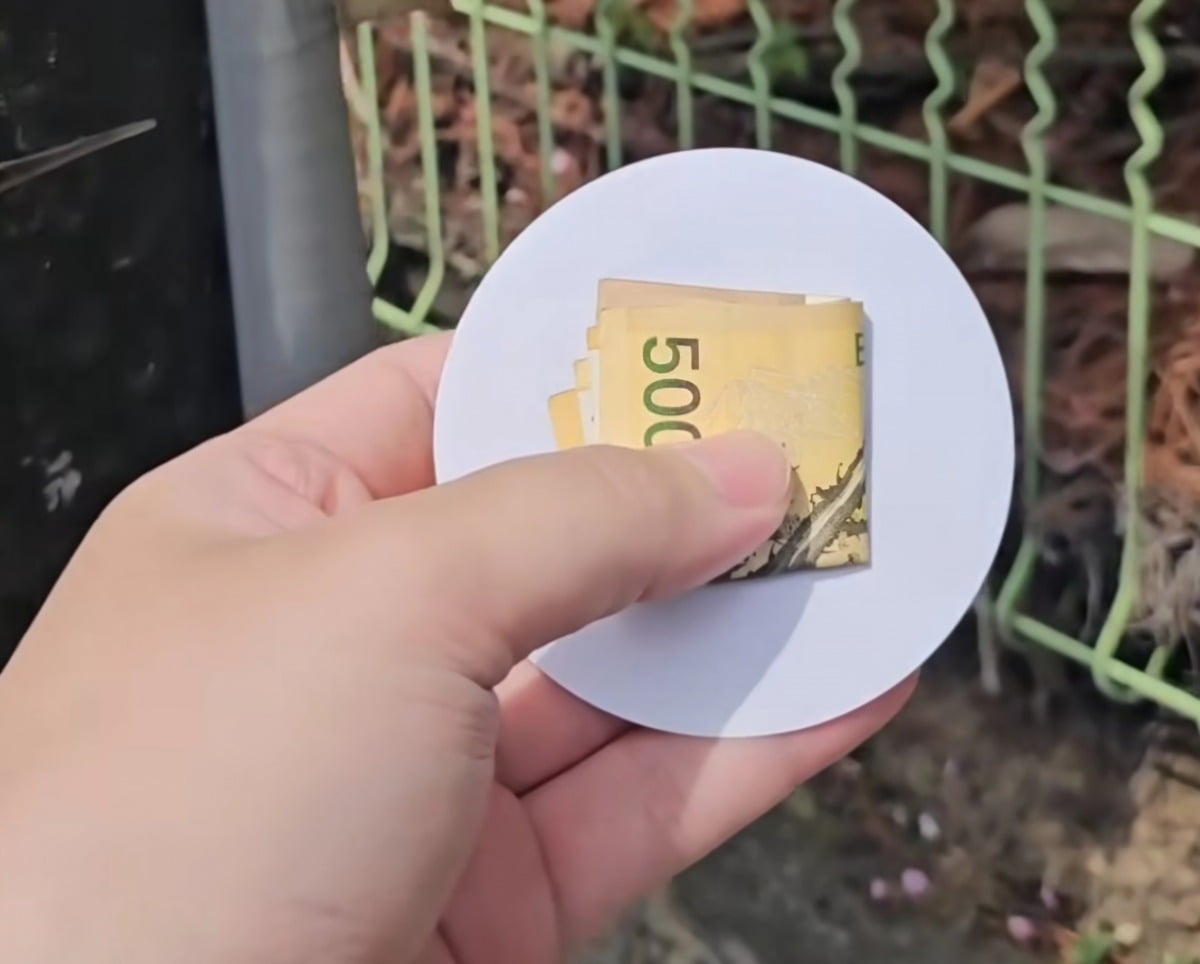 SNS 계정 주인이 '○○(지역명) 곳곳에 숨은 돈을 찾아보세요'라는 문구를 내걸고 지폐를 접어 스티커 뒷면에 숨긴 뒤 가로등이나 전봇대 등 특정 장소에 붙인 모습을 촬영해 게시하면, 이를 찾아낸 사람이 지폐를 갖게 된다.