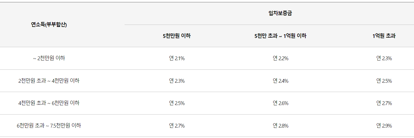 2. 금리: 2.1% ~ 2.9% (부부 합산금에 따라 금리가 다름)