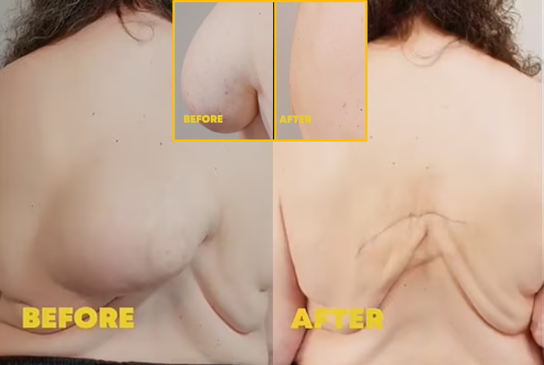 영국 일간 데일리메일에 따르면 55세의 에이미는 처음 등에 혹이 생겼을 때 즉시 의사를 찾아갔지만 당시 의사는 양성 지방종(지방 조직 다발)이라고 말하며 그냥 내버려두라고 했다. 그런 혹이 4년 만에 골프공만 하다 야구공 크기로 커졌고 마침내 수박만해졌다. 혹은 그렇게 17년간 에이미 등에서 자라나 제3의 유방처럼 커졌다.
