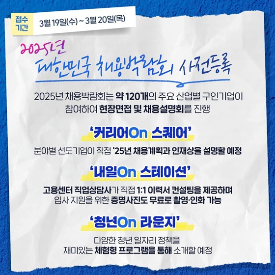 2025년 채용박람회는 약 120개의 주요 산업별 구인기업이 참여하여 현장면접 및 채용설명회를 진행