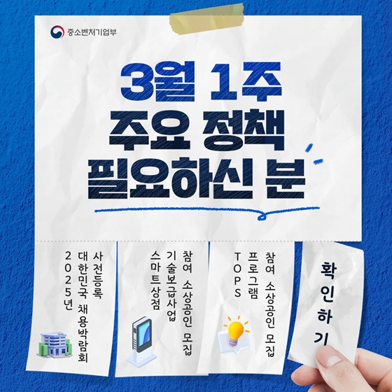 중소기업·소상공인을 위한 주요 정책 필요하신 분!