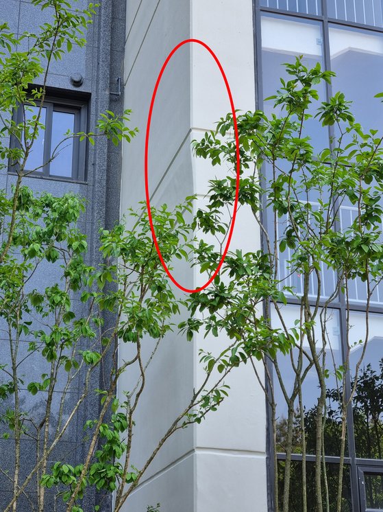 전남 무안군 오룡지구 신축 H아파트가 1차 사전 점검 당시 5만8000건에 달하는 하자를 지적받았다. 사진은 아파트 콘크리트 외벽이 휘어진 모습. 황희규 기자