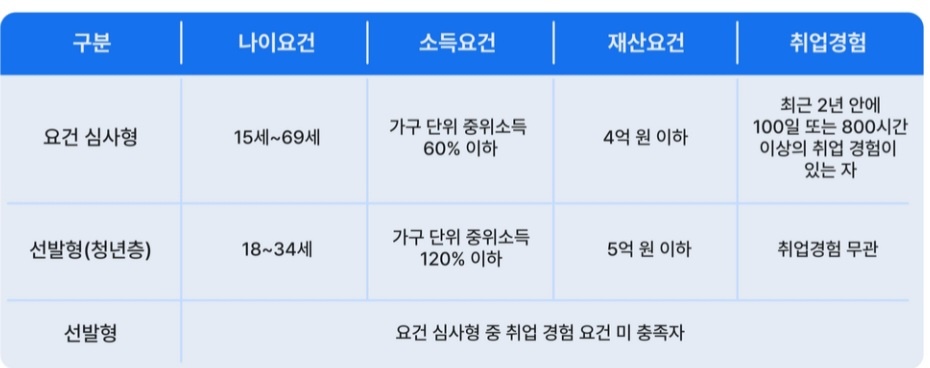 1 유형은 저소득층 대상 유형이에요. 따라서 소득요건, 재산, 취업 경험까지 전체적으로 확인하여 선발한답니다.
