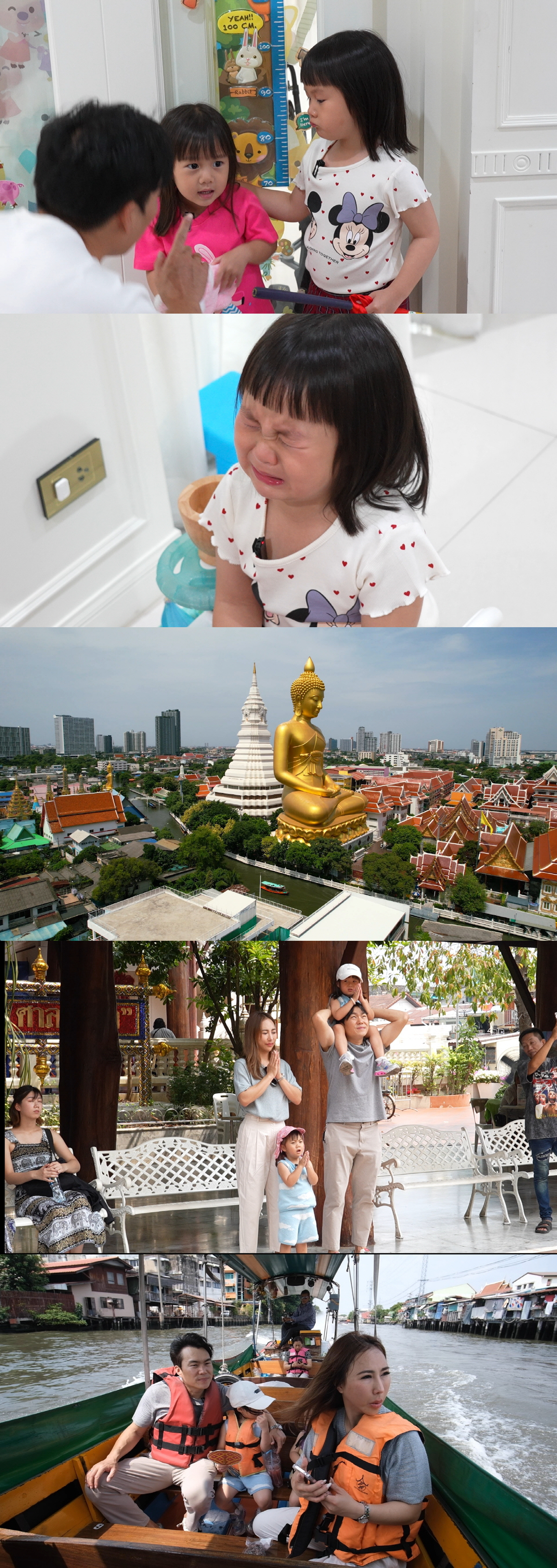 아침부터 분주하게 준비를 마치고 어디론가 나온 가족. 목적지에 도착하자마자 온 가족의 시선을 사로잡은 게 있었으니, 그것은 바로 방콕 도심 한가운데에 우뚝 솟은 69m 높이의 초대형 불상! 사원 '왓 빡남 파씨 짜런'의 명물로 현지인은 물론 관광객들에게도 유명한 거대 불상! 불심 깊은 태국인 엄마는 불상 앞에 경건하게 기도를 올리고, 이제 겨우 5살·3살 꼬마인 유민 유빈이 역시 익숙한 듯 합장하며 기도한다.