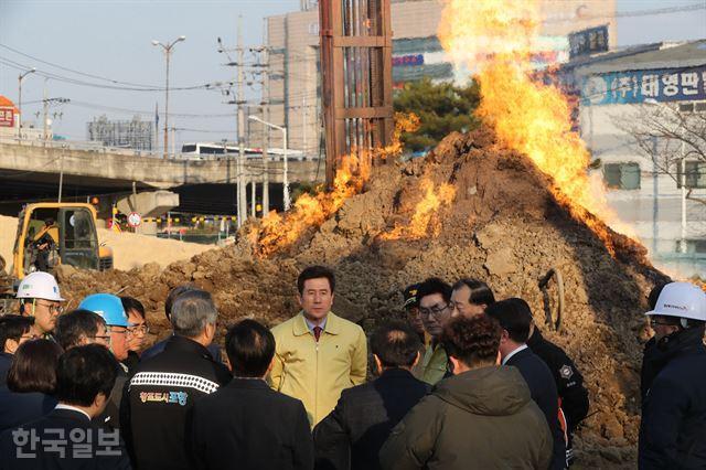 이듬해 3월에는 남구 대잠동 철길숲 공원조서지에서 지하수 개발을 위해 지하 200m 관정을 파던 중 땅속에서 나온 천연가스로 굴착기에 불이 붙었다. 금방 꺼질 것이란 전문가 예측과 달리 7년이 지난 지금까지 타오르고 있다.
