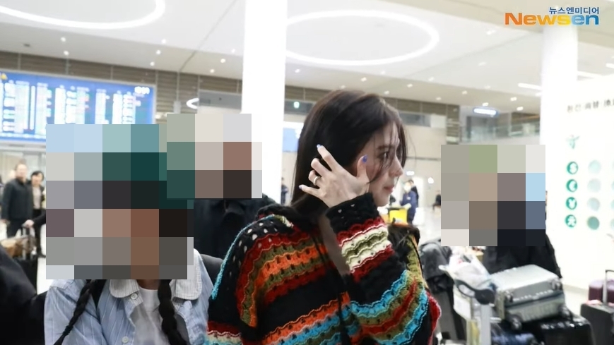 하와이에서 류준열과 함께 시간을 보냈던 한소희는 이날 지인의 손을 잡은 채 밝은 미소를 지으며 등장했다. 에스컬레이터를 타고 올라가던 중 취재진을 향해 웃으며 인사를 하기도 했다. 특히 한소희는 이날 약지에 반지를 착용하고 등장해 관심을 모았다.
