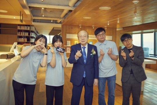 한편 김 회장은 이동 중 마주친 사내카페의 청각장애 바리스타 직원들이 휴대폰 액정화면에 '회장님♡사랑합니다'라고 적은 문구를 흔들며 인사하자, 환하게 웃으며 함께 사진촬영 할 것을 직접 제안했다. 장애인 직원들은 예상치 못한 제안에 깜짝 놀라며 활짝 웃음을 짓기도 했다.