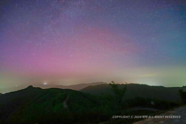 연합뉴스는 13일 한국천문연구원이 공개한 오로라 사진을 보도했다. 전날 강원도 화천에서 아마추어 전문가인 용인어린이천문대 소속 박정하·심형섭 씨가 촬영한 오로라다.