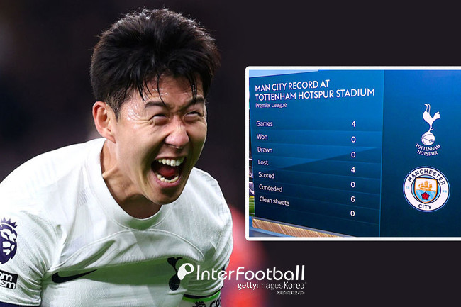 4경기 전패다. 맨시티가 이토록 힘을 쓰지 못했던 경기장은 없었다. 심지어 무득점이다. 2019-20시즌(0-2 패배), 2020-21시즌(0-2 패배), 2021-22시즌(0-1 패배), 2022-23시즌(0-1 패배) 네 시즌 연속으로 패배했다. 승리는 고사하더라도 득점이 하나도 없다는 것이 충격적이다. 토트넘으로서는 다시 한번 맨시티의 '토트넘 훗스퍼 스타디움 징크스'를 믿어봐야 한다.