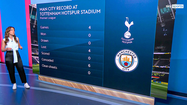 경기를 앞두고 흥미로운 기록이 조명됐다. 영국 '스카이 스포츠'는 14일 공식 SNS 계정을 통해 토트넘 훗스퍼 스타디움에서의 맨시티 기록을 소개했다. 토트넘 훗스퍼 스타디움은 2019-20시즌부터 사용하기 시작한 신축 경기장이다. 맨시티는 이곳에서 4경기만을 치렀다.